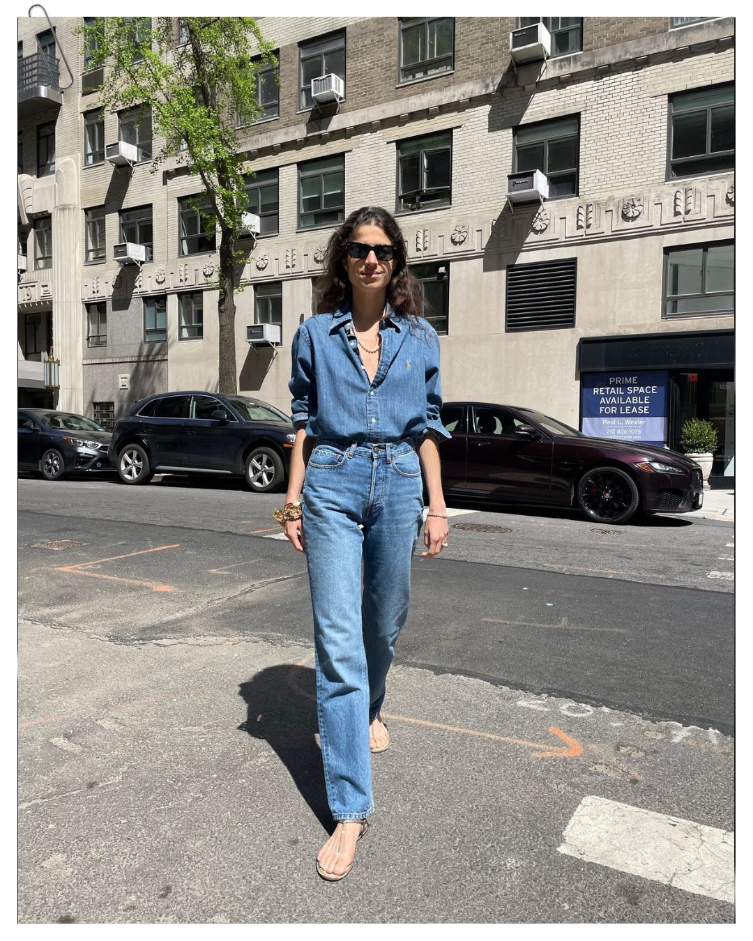 Wow, what can I say about my love affair with denim on denim. Of course, we’re talking all about outfits you can roll your sleeves up in, so denim fits right in here. You can wear it in every season and it fits right in. Fantastic outfit for bopping around town on a Saturday as well. Looks great with a matcha, if that’s your thing.