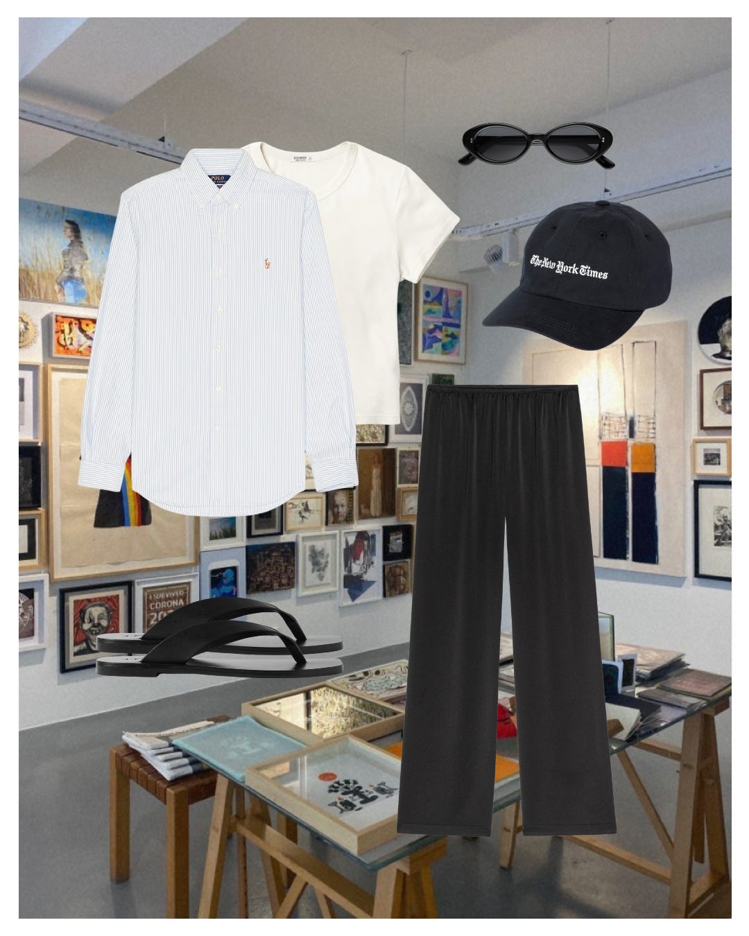 I wear some variation of this weekly. My favorite (non-denim) pants right now are from Donni — I think they’re exceptional and incredibly comfortable. I’m also a big fan of flip flops right now, mostly because I wore so many pairs of wool socks this past winter that I started to hate them.